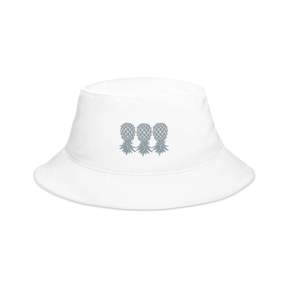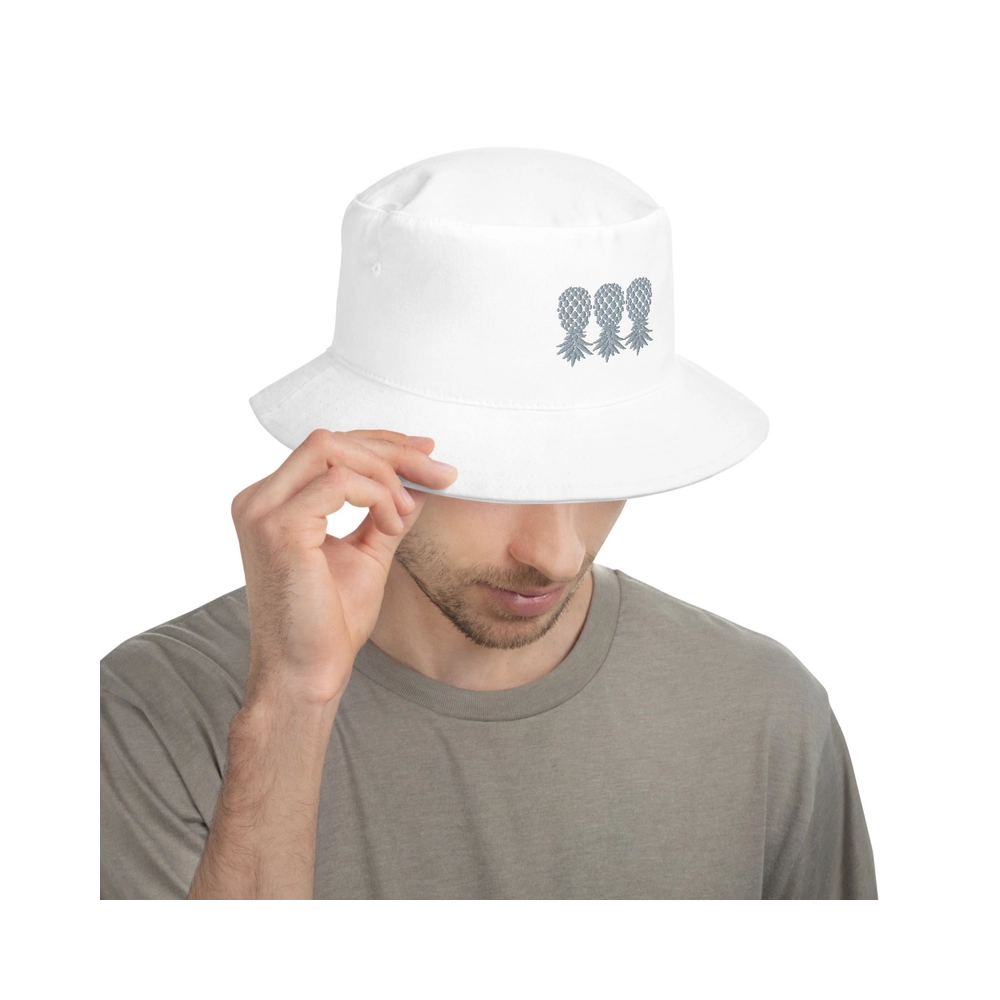3 Gray Upside Down Pineapples Embroidery On Bucket Hat