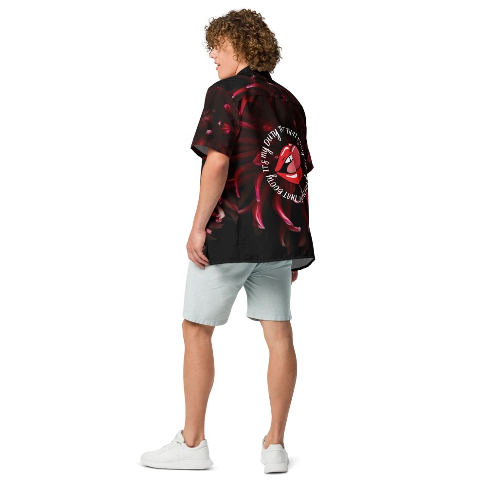 Master the moment in summer comfort. The Unbutton Me Shirt is a heat-dropping piece you’ll love for lounging, teasing, and living loud. This all-over sublimated shirt is soft AF, and sewn by experts to make your statement from every angle. Eco-conscious, lightweight, and intentionally bold—whether you’re buttoned up or letting it all hang loose.