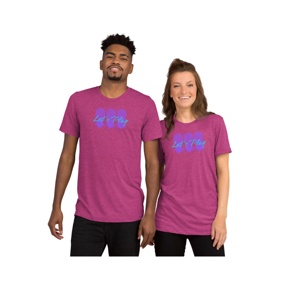 Let's Play Upside Down Pineapples Purple/Blue DTG Print On Short Sleeve T-shirt