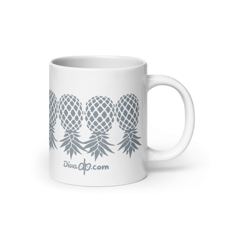 Upside Down Pineapples Gray Diva dp On White Coffee Mug